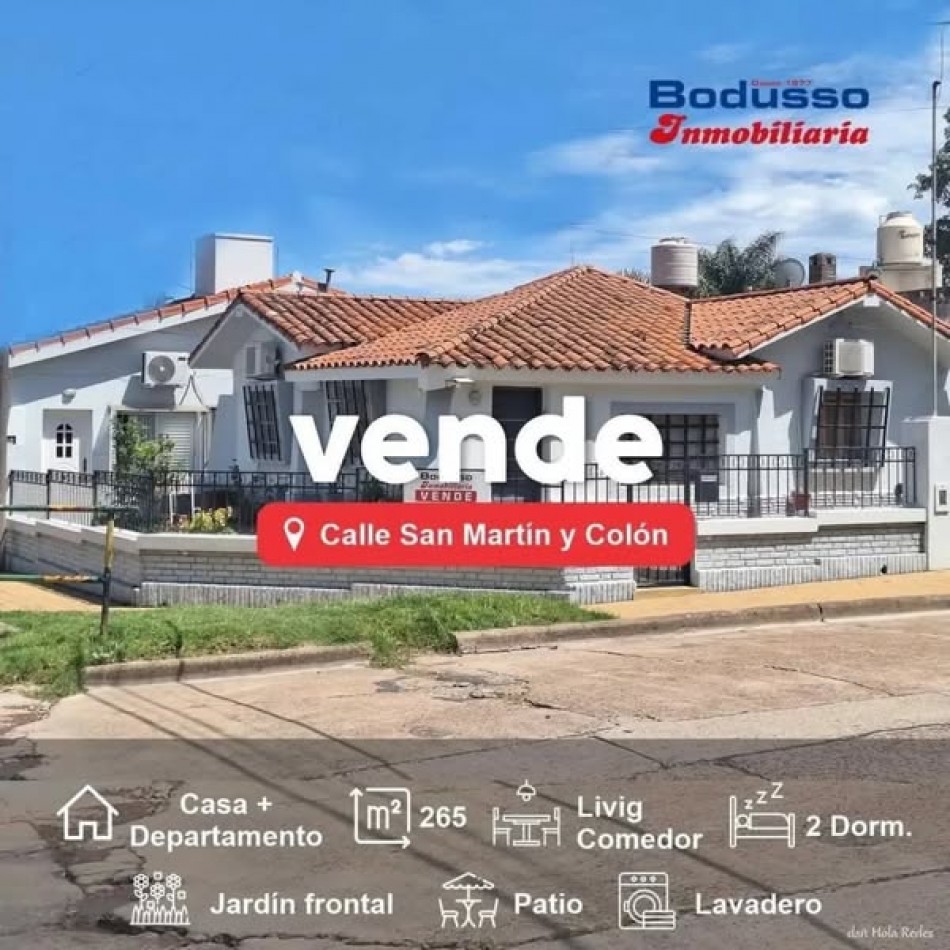 CASA + DEPARTAMENTO EN VENTA, CALLE SAN MARTIN Y COLON